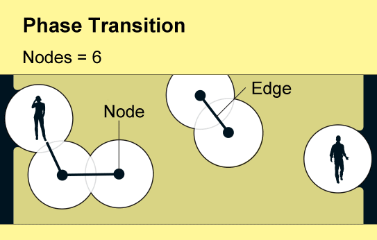 Like any mathematical model, the abstract version of this network is based on simplified assumptions. The smartphones are randomly scattered, without any mimicking of the natural clusters and patterns in a map of people's meanderings, and two smartphones are linked based only on their distance from each other, without any consideration of walls or other interference. The model nonetheless highlights the central role that percolation theory plays in real mesh networks.