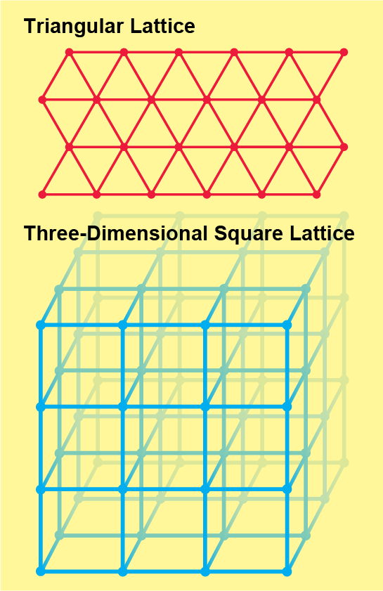 The answer depends on the exact shape of the (infinite) network and is far from easy to find. Even proving that the threshold for a square lattice—the simplest system—is one half was a daunting challenge, finally solved by mathematician Harry Kesten in 1980. And despite decades of effort, the exact percolation thresholds are known only for a few exceedingly simple networks. “There's a whole bunch of work done on just finding what the threshold is,” says Robert M. Ziff, a statistical physicist at the University of Michigan. “It's mind-boggling how many different systems people have looked at.” Ziff put together a Wikipedia page documenting the percolation thresholds for hundreds of different networks. The bias for the triangular lattice is roughly 0.347, a number determined analytically, but the vast majority of the numbers on that page (including the threshold bias of a three-dimensional square lattice) are approximations derived through computer simulations.