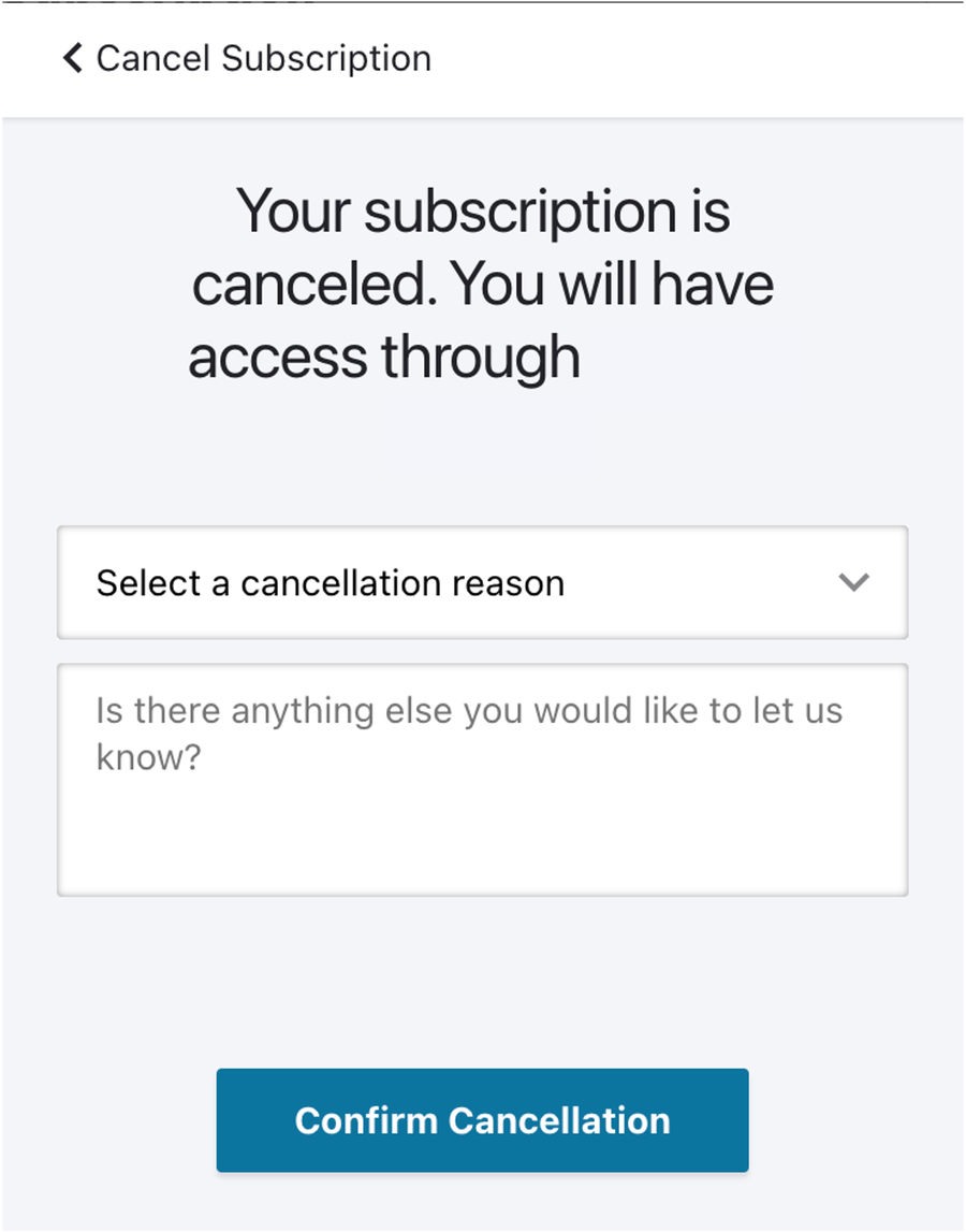 Then navigate to “Cancel My Subscription” in the sidebar, where you can request a cancellation.